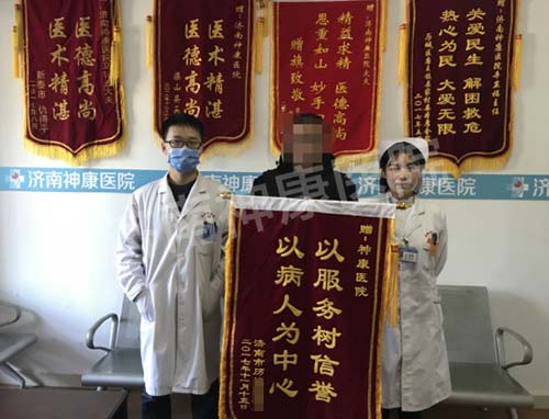 出院后,小宋又重新去参加网络布线工作,工作很有条理,得到了工友和客户的认可,他就更感激济南神康医院大夫、护士对自己的精心治疗和热情服务,于是,他专门请假带妻子和孩子来医院给医护人员送锦旗,表达真心的感谢。