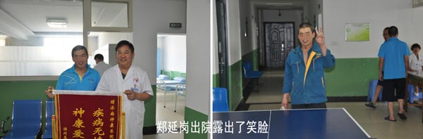 如今,郑延岗好了,不像他入院的时候懒散、暴躁、易怒,那时的他总是怀疑有人要害他,背地里说他坏话,偶尔还会对人大打出手。现在的他,通过药物、针灸、经颅磁物理治疗和适时的心理疏导,已经有效治疗了,没有幻听,没有妄想,更不会打人、摔东西。临走时的郑延岗,留给我们的是一张大大的笑脸。
