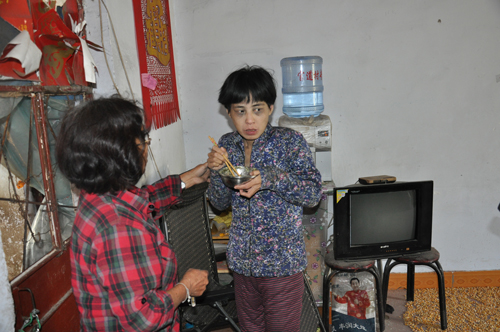 当天下午,济南神康医院资深精神疾病专家马增来主任在神康救助小组的陪同下来到了胡丽萍家中,打开胡丽萍的房间,映入笔者眼帘的除了满屋的狼藉以外便是体型消瘦,有着大大黑眼圈的胡丽萍,在见到我们那一刻起,胡丽萍嘴里就一直在不停的自言自语着,且时而大笑,时而哭泣,并用抵触的眼神看着我们。经马主任诊断,胡丽萍为典型“精神分裂症”。经了解,因为家庭条件所限,胡丽萍没有接受过任何正规、系统化的治疗,平时的病情都是靠药店里面买的抗精神药控制。考虑到胡丽萍的家庭情况及病情,马主任决定带其回医院接受全方位系统化的治疗,且免去其所有的治疗费用。