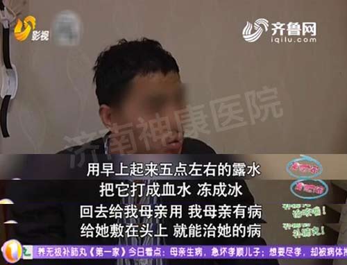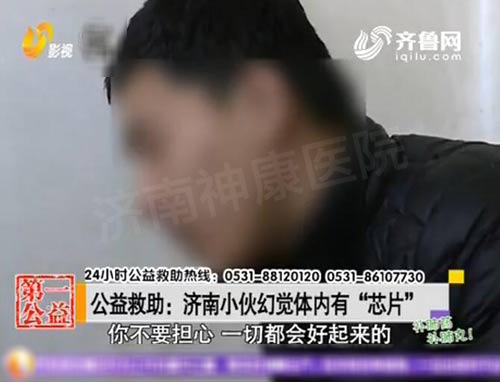 来自济南槐荫区的小王说自己体内有“芯片”,用早晨五点左右的露水,把它打成血水,冻成冰,敷在头上能治母亲的病,并对此说法坚信不移,济南神康医院精神卫生专家辛显福主任解释到,他有幻听,感觉有电波、芯片在控制他,是一种物理影响的妄想,再就是他行为比较紊乱,社会功能丧失,病程接近两年了,根据这些我们的诊断是精神分裂症。 “用早晨五点左右的露水,把它打成血水,冻成冰,敷在头上能治我母亲的病。”