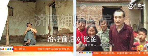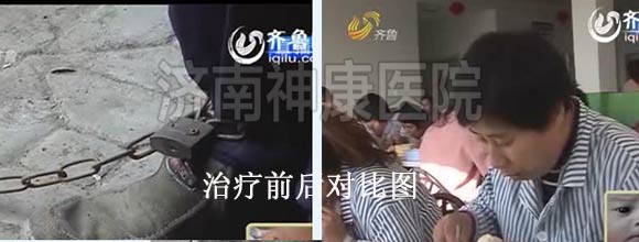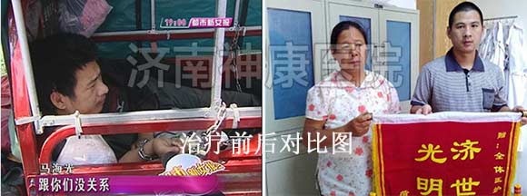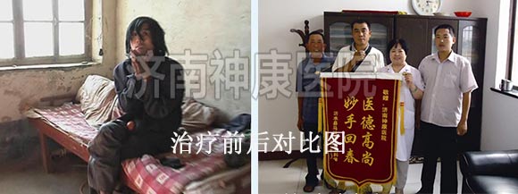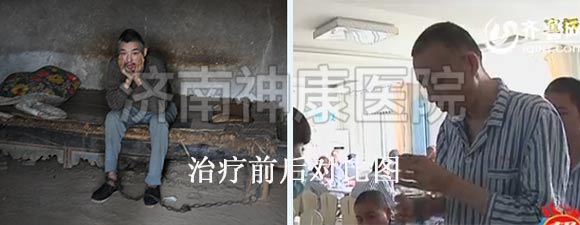泰安马庄镇的村民巩大嫂患者有多年的精神分裂症,只要一发病脱了衣服就往外跑,看见围墙就往上爬,遇见邻居就破口大骂,丈夫为了防止妻子再次出去闯祸、扰乱邻居,无奈之下,只好用一根铁链锁住了她的双脚。2012年2月,巩大嫂的事件被媒体报道后,引起了神康医院的关注,经过一个月的综合系统治疗之后,巩大嫂面色红润了不少,生活已经完全可以自理了,自语自笑、妄想的症状也全部消失了,已达到临床有效治疗出院的标准。详情点击:女子精神分裂 丈夫铁链锁脚