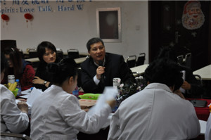 后,在医院五楼多媒体会议厅内,考察团人员与院领导、各病区主任医师、门诊专家、各病区护士长等相关人员进行终的详细讨论。参会人员还一起观看了由台湾专家团带来的医疗视频。张胜利博士对视频中出现的一些治疗和护理知识提出了自己的观点,并指出一些护理和治疗中常见的错误,避免医院各部门人员在实际情况中出现此类问题。