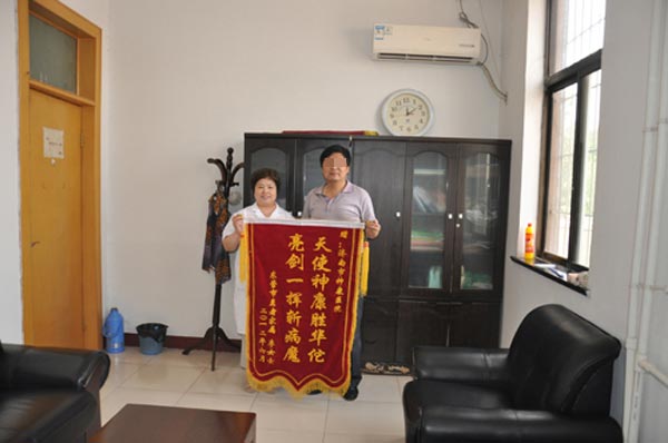 6月11日上午,在济南神康医院黄主任办公室里,手拿一面写有“天使神康胜华佗,亮剑一挥斩病魔”锦旗的刘洪坤的家属不停地向黄主任道谢,这是为什么呢?