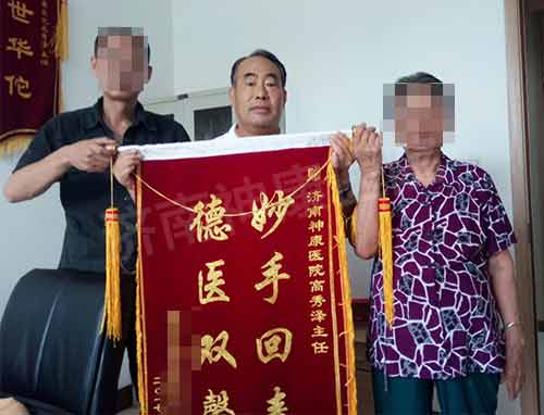 “我到别的医院又是吃药又是住院,治了2年多都没治好,来到神康医院,高主任用一个月的时间就把我治好了,我真的非常感谢济南神康医院,感谢高主任!”郑大妈激动地说。郑大妈的治疗效果让儿子喜出望外,更是特意制作了锦旗送给高主任,来表达全家对他的感激之情。